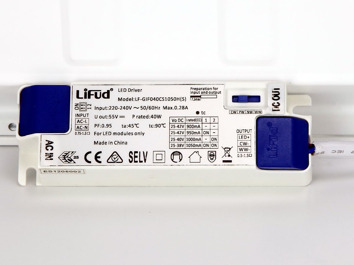 The Backlit Panel in the Power Switch + 4CCT version is a modern luminaire designed for demanding office, educational, and commercial spaces. Thanks to power adjustment in 4 ranges (34W / 36W / 38W / 40W) and four light color settings (2700K / 3000K / 4000K / 5000K), you can easily adapt the parameters to specific conditions and user needs. It offers efficiency up to 132 lm/W, achieving a maximum luminous flux of 5300 lm at 4000K. The efficiency for other color temperatures is respectively: 120 lm/W for 2700K, 125 lm/W for 3000K, and 130 lm/W for 5000K.
